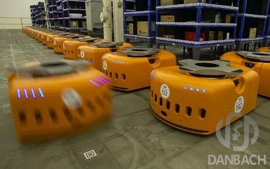 丹巴赫倉儲搬運機器人在倉庫內(nèi)構建了強大的機器人矩形方陣,通過的任務編排、調(diào)度算法優(yōu)化、高精度二維碼定位導航技術和良好的人機交互體驗,調(diào)度多臺機器人同時工作,實現(xiàn)機器人之間,機器人和人之間的無縫對接。