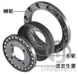 諧波齒輪減速器(Harmonic reducer)是利用行星齒輪傳動(dòng)原理發(fā)展起來(lái)的種新型減速器,在機(jī)器人關(guān)節(jié)減速機(jī)構(gòu)中應(yīng)用較廣。諧波齒輪傳動(dòng)是依靠柔性零件產(chǎn)生彈性機(jī)械波來(lái)傳遞動(dòng)力和運(yùn)動(dòng)的種行星齒輪傳動(dòng)。諧波減速器具有結(jié)構(gòu)簡(jiǎn)單、體積小、重量輕、減速比大、運(yùn)動(dòng)精度高、運(yùn)動(dòng)平穩(wěn)等優(yōu)點(diǎn)。如圖所示,諧波齒輪減速器主要由三個(gè)基本構(gòu)件組成:①帶有內(nèi)齒圈的剛性齒輪——剛輪,它相當(dāng)于行星系中的輪;②帶有外齒圈的柔性齒輪——柔輪,它相當(dāng)于行星齒輪;③波發(fā)生器相當(dāng)于行星架。作為減速器使用時(shí),通常采用波發(fā)生器主動(dòng),剛輪固定,柔輪輸出的形式。